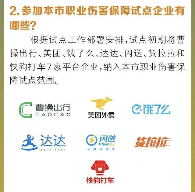 據(jù)了解,“新型社?!痹圏c從去年7月1日啟動實施,第一批試點在曹操出行、美團、餓了么、達達、閃送、貨拉拉、快狗打車7家平臺企業(yè),在全國7個省市開展。