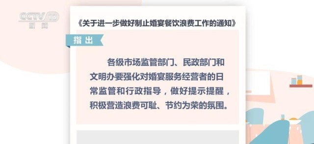央視網(wǎng)消息:市場監(jiān)管總局、民政部和中央文明辦近日聯(lián)合印發(fā)《通知》,通過強(qiáng)化部門聯(lián)動(dòng),推進(jìn)制止婚宴餐飲浪費(fèi)工作。