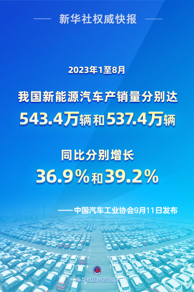 1至8月我國新能源汽車產(chǎn)銷量同比分別增長36.9%和39.2%