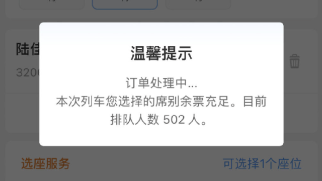 余票充足仍需排隊(duì)是由于同一時(shí)間點(diǎn)下訂單的用戶過(guò)多。12306開(kāi)啟售票時(shí)間固定,不會(huì)針對(duì)第三方軟件提前售票。