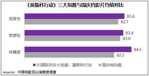 邱禮濤導(dǎo)演執(zhí)導(dǎo)的警匪動作電影《93國際列車大劫案:莫斯科行動》獲得觀眾滿意度評分83.7分,與檔期第一名和第二名僅差0.4分和0.1分;在滿意度調(diào)查過的邱禮濤導(dǎo)演七部影片中,《莫斯科行動》滿意度處在平均水平之上。