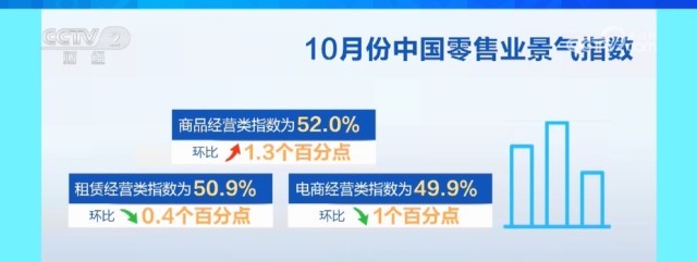 央視網(wǎng)消息:10月9日,中國(guó)商業(yè)聯(lián)合會(huì)發(fā)布10月份中國(guó)零售業(yè)景氣指數(shù)為51.3%,較上月微升0.5個(gè)百分點(diǎn),創(chuàng)近一年新高。