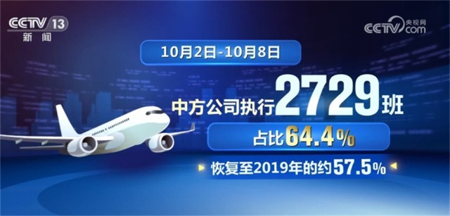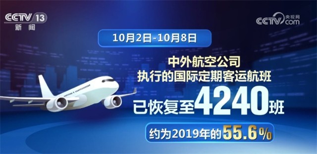 民航局最新數(shù)據(jù)顯示,上周(10月2日—10月8日),中外航空公司執(zhí)行的國際定期客運航班已恢復至4240班,約為2019年的55.6%;其中中方公司執(zhí)行2729班,占比64.4%,恢復至2019年的約57.5%;外航執(zhí)行1511班,占比35.6%,恢復至2019年的約42.5%。