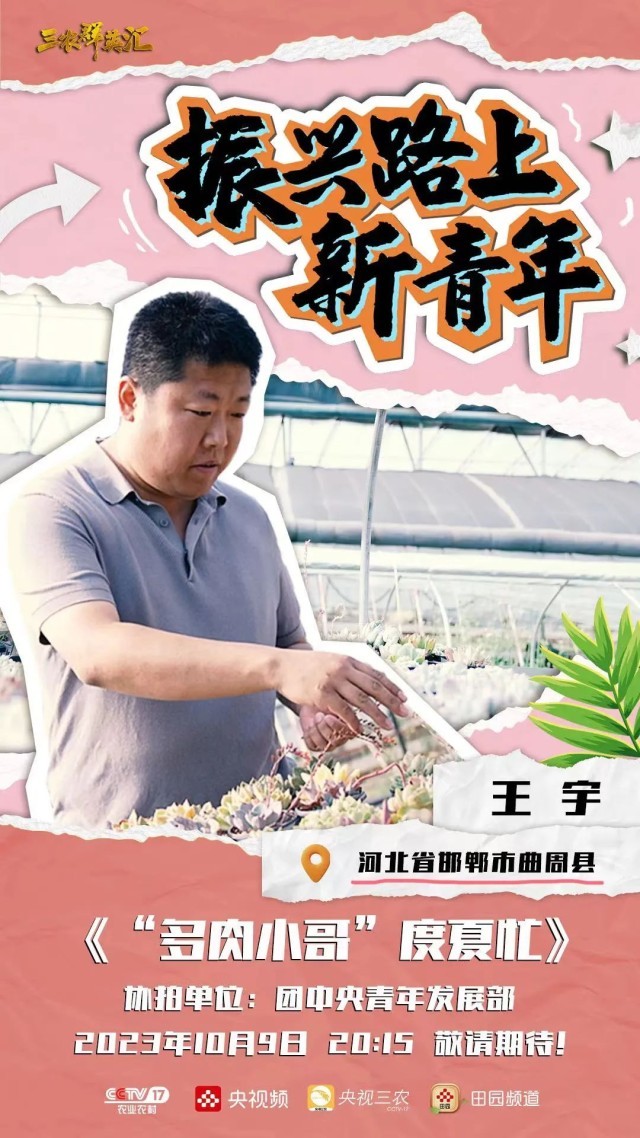 為深入貫徹落實黨的二十大精神,認真學(xué)習宣傳貫徹習近平總書記在同團中央新一屆領(lǐng)導(dǎo)班子集體談話時的重要講話精神,進一步發(fā)揮鄉(xiāng)村振興青年先鋒模范帶動作用,引導(dǎo)鼓勵廣大青年在全面推進鄉(xiāng)村振興、加快建設(shè)農(nóng)業(yè)強國中挺膺擔當、貢獻力量,共青團中央青年發(fā)展部聯(lián)合中央廣播電視總臺農(nóng)業(yè)農(nóng)村節(jié)目中心,共同推出電視專題紀錄片《振興路上新青年》。