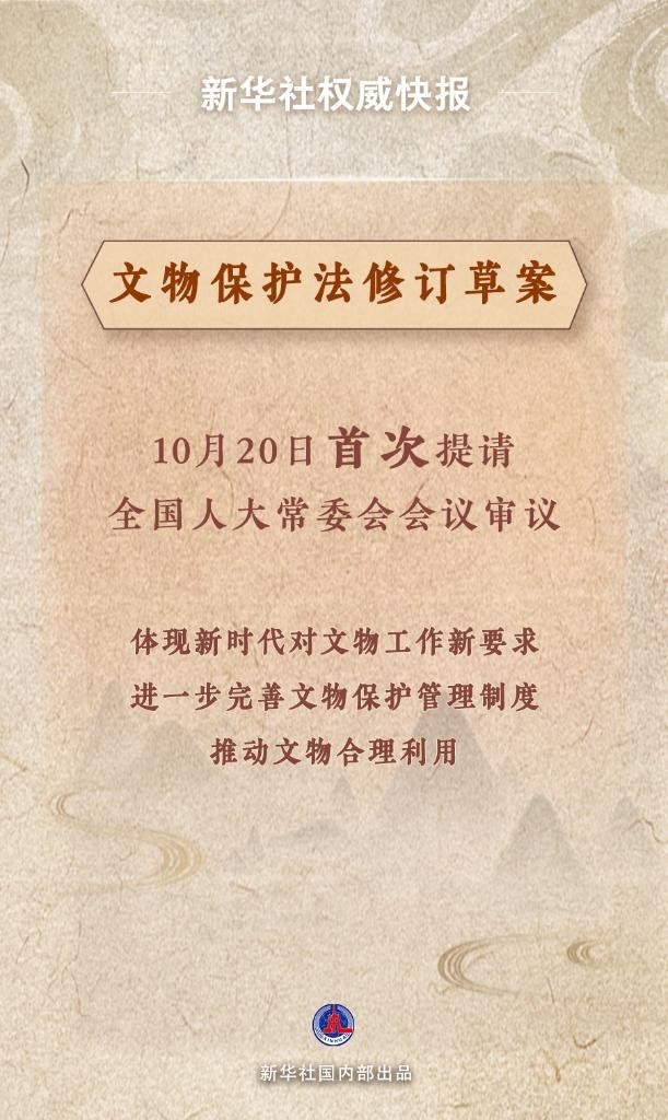 10月20日,文物保護(hù)法修訂草案提請(qǐng)十四屆全國(guó)人大常委會(huì)第六次會(huì)議首次審議。修訂草案貫徹黨中央決策部署,體現(xiàn)新時(shí)代對(duì)文物工作新要求;堅(jiān)持把保護(hù)放在第一位,進(jìn)一步完善文物保護(hù)管理制度;妥善處理保護(hù)和利用的關(guān)系,推動(dòng)文物合理利用;多措并舉加大處罰力度,嚴(yán)厲打擊破壞文物違法行為。
