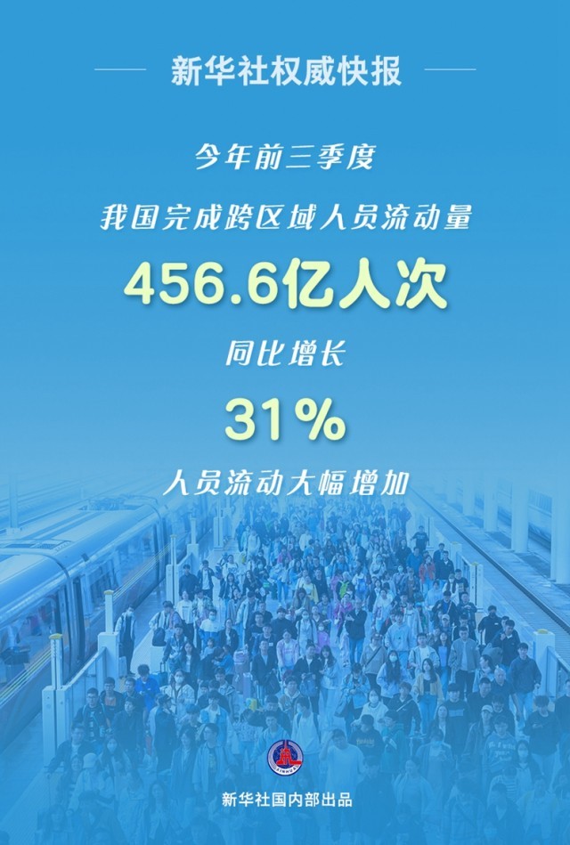 今年前三季度我國完成跨區(qū)域人員流動(dòng)量456.6億人次
