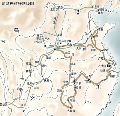 為了實現(xiàn)這個宏愿,有必要“網羅天下放失舊聞”,以增長見識?;诖?,司馬遷開始了出游,他在《太史公自序》中記載了自己的行程:
