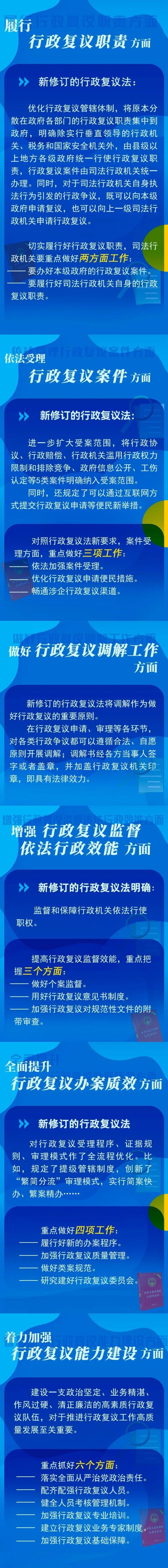 據(jù)悉,新修訂的行政復(fù)議法已由全國人大常委會會議表決通過,自2024年1月1日起施行。司法部有關(guān)負(fù)責(zé)人表示,司法部將加快完善配套制度機(jī)制,修訂行政復(fù)議法實施條例,制定《行政復(fù)議人員工作規(guī)范》《行政復(fù)議聽證規(guī)則》等工作制度。各級司法行政機(jī)關(guān)將加強(qiáng)與人民法院工作聯(lián)動,強(qiáng)化行政復(fù)議、行政訴訟銜接配合,實現(xiàn)理念對接、機(jī)制銜接、信息共享,形成深化訴源治理的合力。
