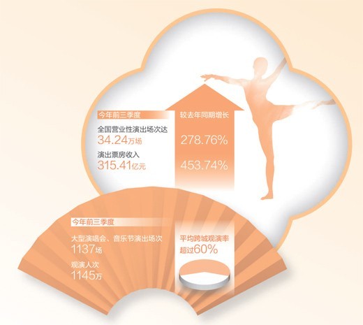 今年前三季度,全國(guó)營(yíng)業(yè)性演出場(chǎng)次、票房收入同比大幅增長(zhǎng) 演出市場(chǎng) 供需兩旺