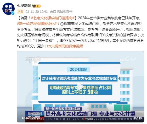 新一輪藝考有哪些變化?文化課成績(jī)門(mén)檻提高