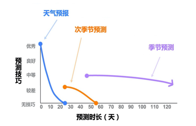 圖為天氣預(yù)報(bào)和次季節(jié)預(yù)測(cè)的區(qū)別示意。