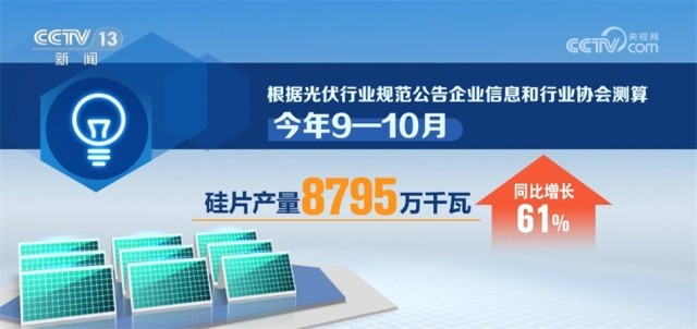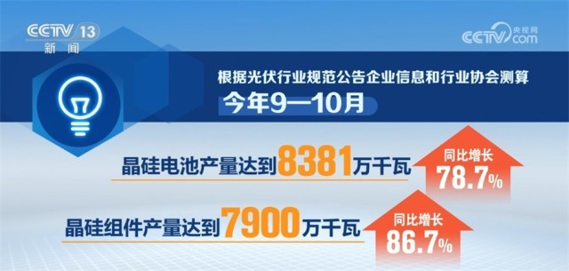 央視網(wǎng)消息:工業(yè)和信息化部昨天(12月13日)發(fā)布當(dāng)前全國光伏制造行業(yè)最新運行情況。數(shù)據(jù)顯示,今年9—10月,我國光伏制造業(yè)保持高位運行,硅料、硅片、電池、組件產(chǎn)量同比增長均超60%。