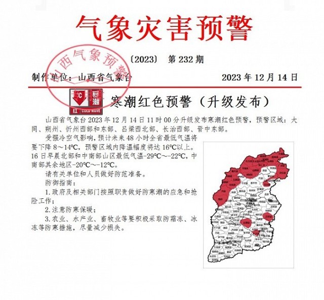 山西省氣象臺升級發(fā)布寒潮紅色預(yù)警