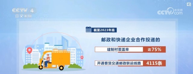 數(shù)據(jù)顯示,截至2023年底,中國郵政建成1061個縣、6010個鄉(xiāng)鎮(zhèn)的郵政處理中心和40萬個郵政及郵樂購村級站點(diǎn),郵政和快遞企業(yè)合作投遞的建制村覆蓋率達(dá)75%,開通客貨交通郵政聯(lián)運(yùn)線路4115條。