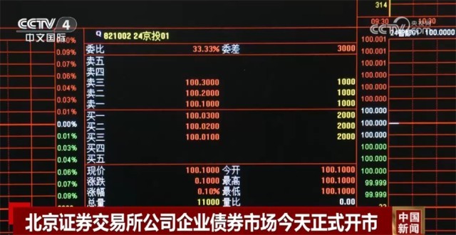 央視網(wǎng)消息:1月15日上午,北京證券交易所公司企業(yè)債券市場正式開市。開市首日,北交所公司企業(yè)債券市場上市3只企業(yè)債券,債券發(fā)行規(guī)模合計24.8億元。