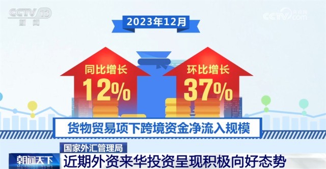 國家外匯管理局?jǐn)?shù)據(jù)顯示,2023年12月,我國貨物貿(mào)易保持較高規(guī)模資金凈流入,近期外資來華投資呈現(xiàn)積極向好態(tài)勢。