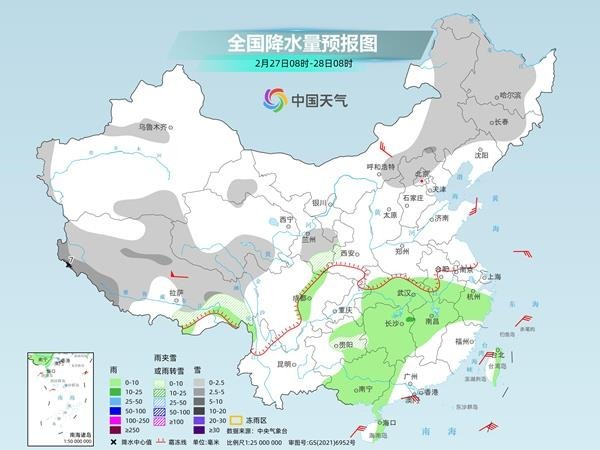 氣象部門提醒,南方大部陰雨頻繁的天氣將延續(xù)至3月初,其中,后天至3月1日,降水又將增強(qiáng),需關(guān)注路面濕滑、能見度下降等對(duì)春運(yùn)出行等方面的不利影響。華北、東北部分地區(qū)今明天將有降雪,公眾雪天外出請(qǐng)留意交通安全。