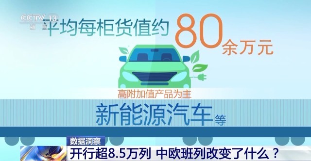 全程時刻表中歐班列速度最快,貨值最高。它的貨品以新能源汽車等高附加值產(chǎn)品為主。平均每柜貨值約80余萬元,比普通班列高出13%。去年中歐班列承載的貿(mào)易額超過750億美元,比前三年的平均值增長了50%。