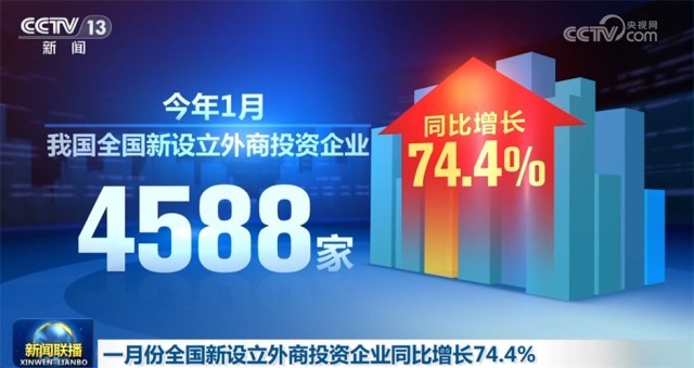 今年1月,我國全國新設立外商投資企業(yè)4588家,同比增長74.4%。制造業(yè)實際使用外資金額增長20.5%,其中高技術制造業(yè)實際使用外資增長40.6%。