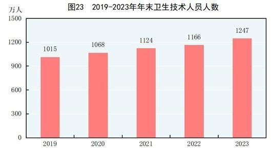 年末全國共有醫(yī)療衛(wèi)生機(jī)構(gòu)107.1萬個(gè),其中醫(yī)院3.9萬個(gè),在醫(yī)院中有公立醫(yī)院1.2萬個(gè),民營醫(yī)院2.7萬個(gè);基層醫(yī)療衛(wèi)生機(jī)構(gòu)101.6萬個(gè),其中鄉(xiāng)鎮(zhèn)衛(wèi)生院3.4萬個(gè),社區(qū)衛(wèi)生服務(wù)中心(站)3.7萬個(gè),門診部(所)36.2萬個(gè),村衛(wèi)生室58.3萬個(gè);專業(yè)公共衛(wèi)生機(jī)構(gòu)1.2萬個(gè),其中疾病預(yù)防控制中心3426個(gè),衛(wèi)生監(jiān)督所(中心)2791個(gè)。衛(wèi)生技術(shù)人員1247萬人,其中執(zhí)業(yè)醫(yī)師和執(zhí)業(yè)助理醫(yī)師478萬人,注冊(cè)護(hù)士563萬人。醫(yī)療衛(wèi)生機(jī)構(gòu)床位1020萬張,其中醫(yī)院800萬張,鄉(xiāng)鎮(zhèn)衛(wèi)生院151萬張。全年總診療人次95.6億人次,出院人次3.0億人次。