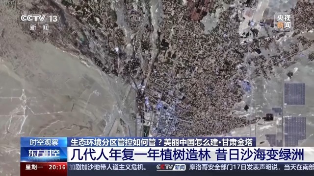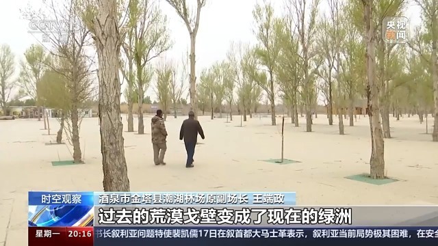 甘肅酒泉金塔縣潮湖林場(chǎng)副場(chǎng)長(zhǎng) 王端政:過去的沙進(jìn)人退變成了現(xiàn)在的人進(jìn)沙退,過去的荒漠戈壁變成了現(xiàn)在的綠洲,現(xiàn)在金塔的生態(tài)環(huán)境得到了很大的改善。