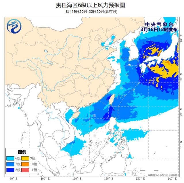 預(yù)計,19日白天至21日白天,東海南部海域、臺灣海峽、臺灣以東洋面、巴士海峽、南海大部海域、北部灣將有6~7級,陣風(fēng)8級的偏北或東北風(fēng),其中臺灣海峽、巴士海峽、南海東北部部分海域風(fēng)力可達8級、陣風(fēng)9-10級。