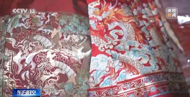 魏平安:因?yàn)榻衲赀^年是龍年,我們特意設(shè)計(jì)了兩款比較好看的龍圖案馬面裙,沒想到它們兩個都爆了。這款就是比較直接一點(diǎn),就是有一個很大的龍的刺繡加了一些龍紋,加了一些花、牡丹花之類的。