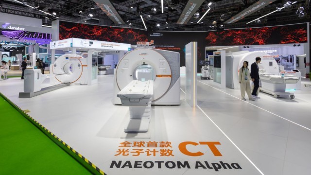2023年11月8日在第六屆中國國際進口博覽會醫(yī)療器械及醫(yī)藥保健展區(qū)拍攝的西門子展位。新華社記者 王翔 攝