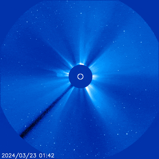 再加之此次日冕物質拋射過程發(fā)生的位置幾乎正對地球。從地球看去,噴發(fā)物形成一個圓面,也就是“全暈”。此類爆發(fā)活動噴出的太陽物質相對地球速度快、覆蓋度高,可能會引起比較強的地磁活動。