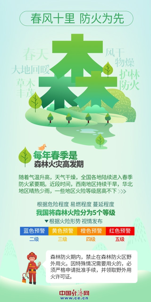 中國經(jīng)濟(jì)網(wǎng)北京4月3日訊(記者 楊秀峰 李冬陽 景遠(yuǎn))近期,春耕生產(chǎn)、踏青旅游、民俗祭祀等活動(dòng)逐漸增多,一些地區(qū)接連發(fā)生森林火災(zāi);一些地區(qū)火險(xiǎn)等級居高不下,全國各地陸續(xù)進(jìn)入春季防火緊要期,防滅火形勢嚴(yán)峻復(fù)雜。