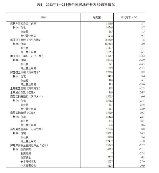 國(guó)家統(tǒng)計(jì)局:1-2月份商品房銷售額下降19.3%