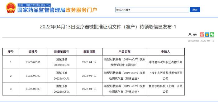 國家藥監(jiān)局又批準3個新冠病毒抗原檢測試劑上市