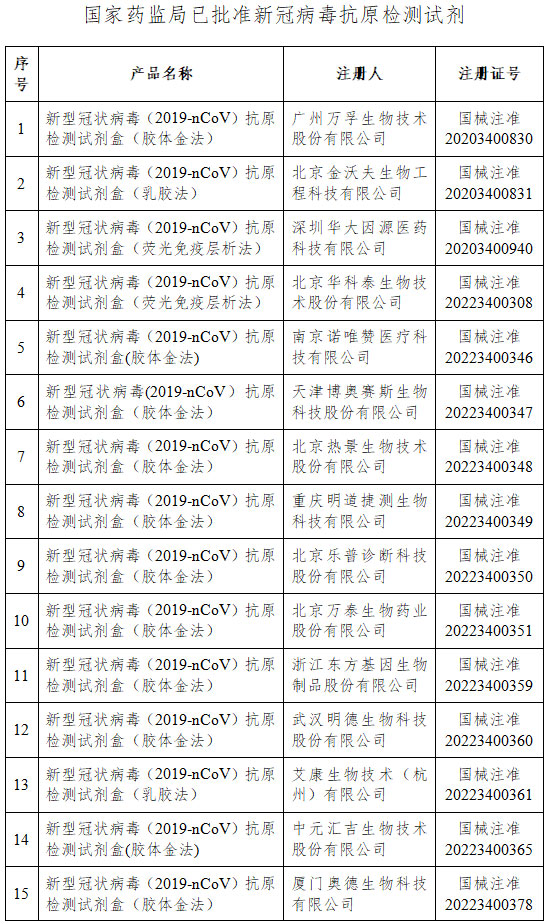 據(jù)國家藥監(jiān)局網(wǎng)站消息,4月20日,國家藥監(jiān)局再次審查批準(zhǔn)2個新冠病毒抗原檢測試劑產(chǎn)品。至此,國家藥監(jiān)局已批準(zhǔn)29個新冠病毒抗原檢測試劑產(chǎn)品。