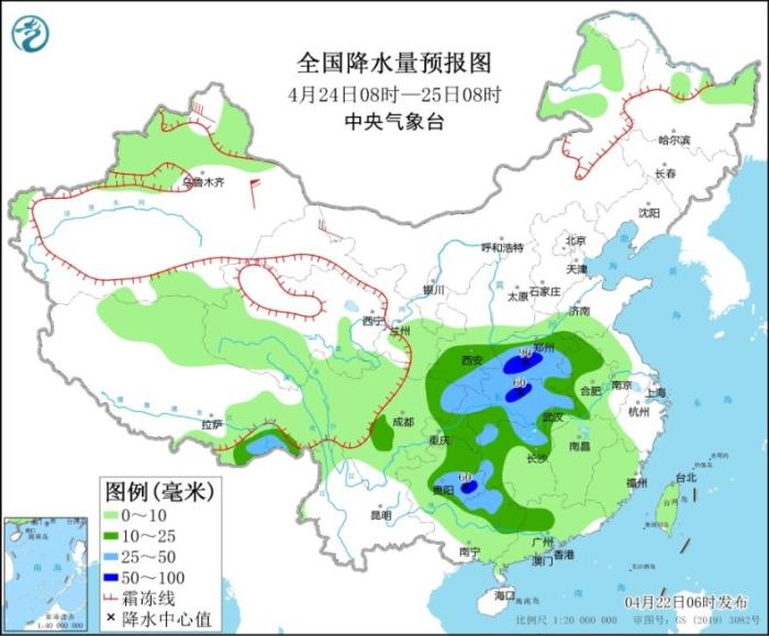 圖3 全國降水量預(yù)報圖(4月24日08時-25日08時)
