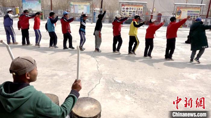 圖為多油完小學(xué)生在課余時間練習(xí)傳統(tǒng)非遺舞蹈“嘎爾”舞。 貢桑拉姆 攝
