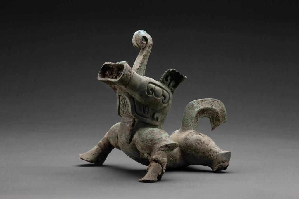這只“萌獸”出土于三星堆3號“祭祀坑”坑底,長28.5厘米、高26.4厘米、寬23厘米,大大的眼睛,嘴巴像一個扁長的“喇叭”,頭上還有一撮“呆毛”,體表有云雷紋條帶裝飾,整體造型昂首挺胸,看起來壯實活潑。