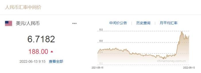 人民幣對美元中間價下調(diào)188個基點(diǎn) 1美元對人民幣6.7182元