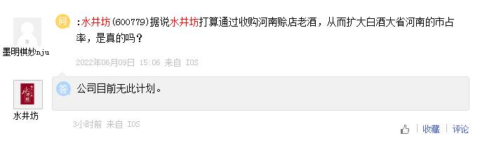 中新財(cái)經(jīng)6月20日電 針對“據(jù)說水井坊打算通過收購河南賒店老酒,從而擴(kuò)大白酒大省河南的市占率”的提問,水井坊6月20日在上證e互動(dòng)平臺表示 ,公司目前無此計(jì)劃。(完)