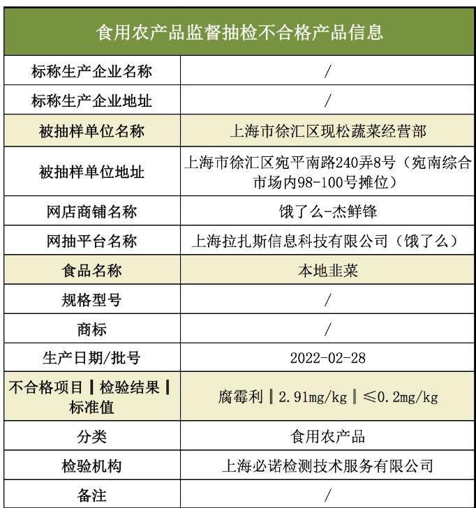 上海市場監(jiān)管局通報 餓了么上銷售的這批韭菜不合格