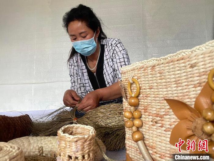 紀(jì)紅艷在加工草編作品 蒼雁 攝