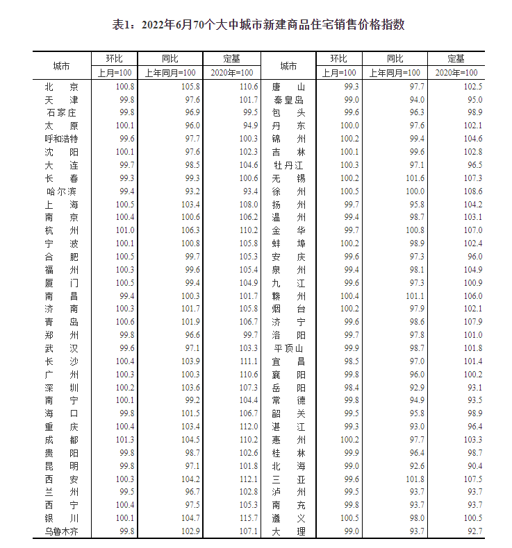 國(guó)家統(tǒng)計(jì)局:6月70城房?jī)r(jià)環(huán)比總體趨穩(wěn) 同比繼續(xù)走低