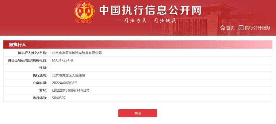 北京金準(zhǔn)醫(yī)學(xué)實(shí)驗(yàn)室成被執(zhí)行人 執(zhí)行標(biāo)的504萬(wàn)