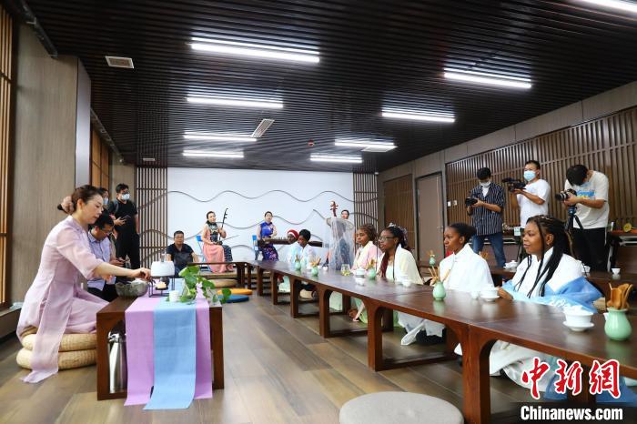 留學(xué)生還更換漢服、唐裝,跟隨老師學(xué)習(xí)茶藝,并品嘗了自己親手泡制的泰山女兒茶。在品茶之余,大家又一起體驗(yàn)了中國(guó)古典樂(lè)器之美,一曲享譽(yù)海內(nèi)外的中國(guó)民歌《茉莉花》,讓在場(chǎng)的留學(xué)生一起跟著哼唱,體悟中國(guó)傳統(tǒng)文化的魅力。