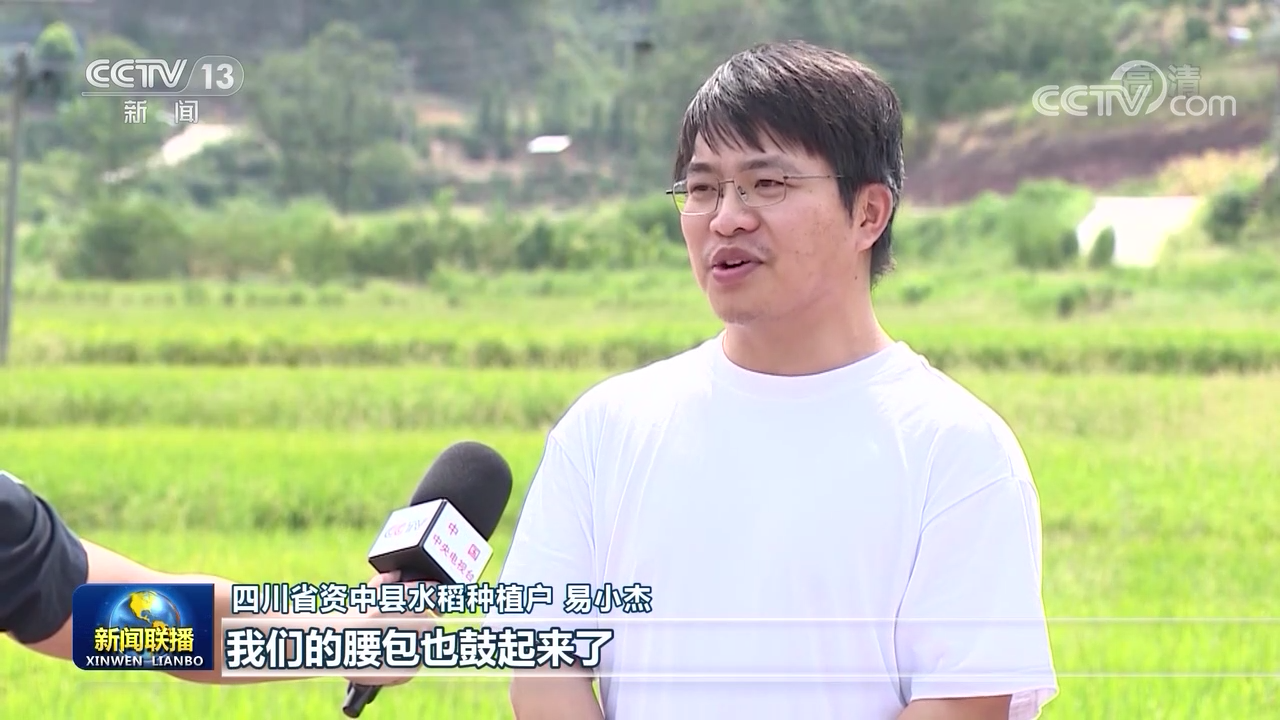 四川省資中縣水稻種植戶 易小杰:全程實(shí)行機(jī)械化耕種,產(chǎn)量也上去了,我們的腰包也鼓起來(lái)了。