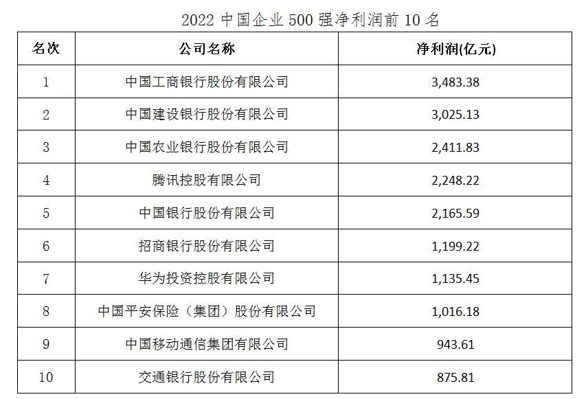 凈利潤(rùn)前10名為工商銀行、建設(shè)銀行、農(nóng)業(yè)銀行、騰訊、中國(guó)銀行、招商銀行、華為、中國(guó)平安、中國(guó)移動(dòng)、交通銀行。