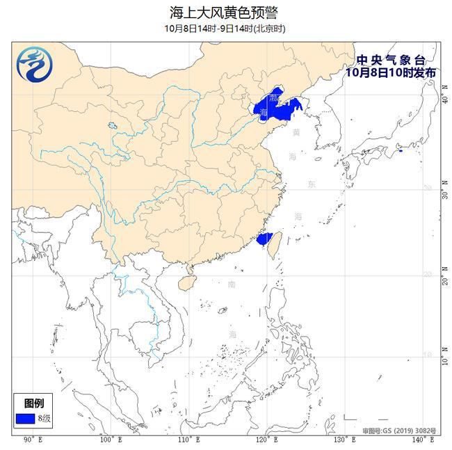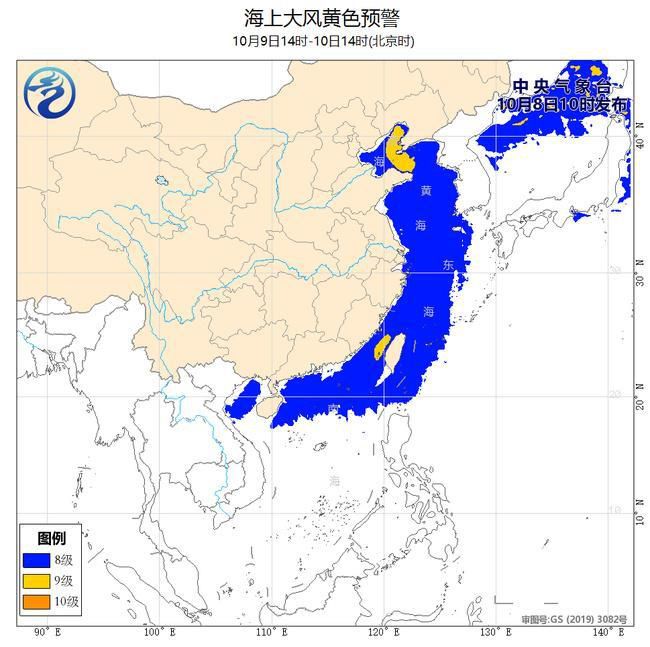 中央氣象臺(tái)10月8日10時(shí)繼續(xù)發(fā)布海上大風(fēng)黃色預(yù)警:
