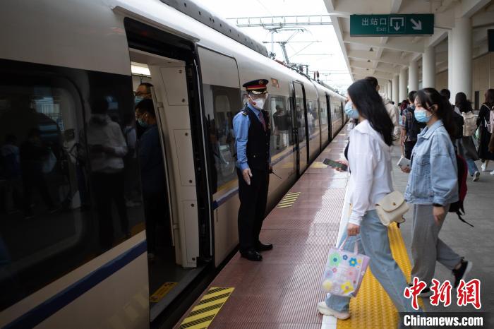 鐘靜引導(dǎo)旅客乘車。 王鵬 攝