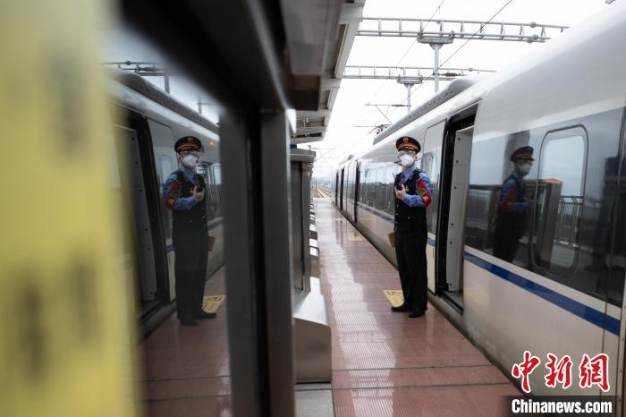 鐘靜在站臺(tái)上值乘?!⊥貔i 攝