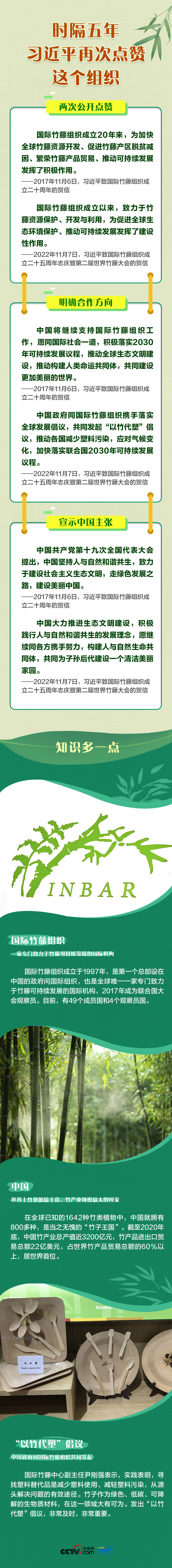 聯(lián)播+“國(guó)際竹藤組織成立以來,致力于竹藤資源保護(hù)、開發(fā)與利用,為促進(jìn)全球生態(tài)環(huán)境保護(hù)、推動(dòng)可持續(xù)發(fā)展發(fā)揮了建設(shè)性作用?!?1月7日,國(guó)家主席習(xí)近平向國(guó)際竹藤組織成立二十五周年志慶暨第二屆世界竹藤大會(huì)致賀信。