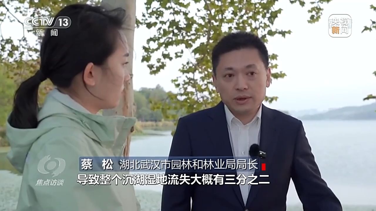 湖北武漢市園林和林業(yè)局局長 蔡松:圍湖造田、養(yǎng)魚,導(dǎo)致整個沉湖濕地流失大概有三分之二,比較嚴(yán)重。從2013年開始,武漢市加大對沉湖濕地的整治力度,通過生態(tài)補(bǔ)償?shù)姆绞剑麄€退漁還濕達(dá)到了7.8萬畝。